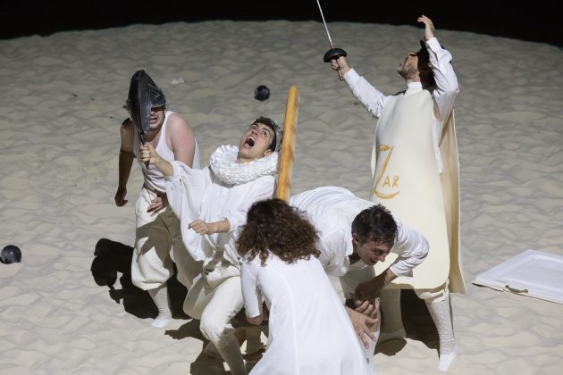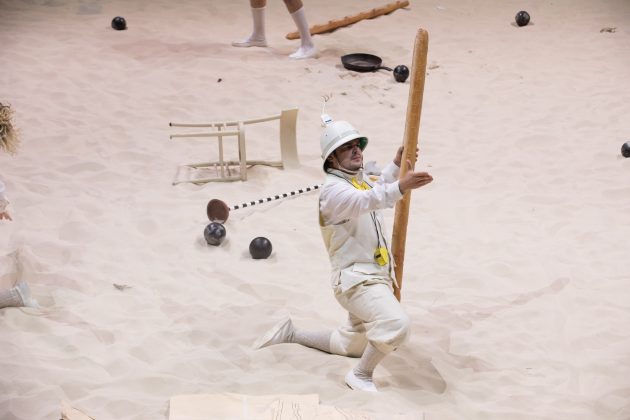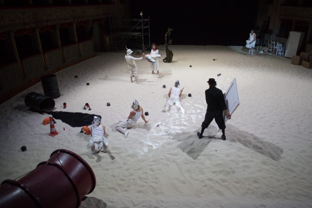 Il regista Fabio Cherstich e l’artista, designer e architetto Luigi Serafini hanno portato in scena al Teatro Argentina un caposaldo del teatro contemporaneo: “Ubu Re”. La platea invasa di sabbia (reduce da “Sun&Sea“) si è trasformata in un arenile suburbano per dar luogo a una nuova versione dell’opera della fine dell’Ottocento. Cherstich e Serafini hanno fatto tesoro della lezione di Alfred Jarry restituendoci una rielaborazione sagace di “Ubu Re”, testo sempre attuale e tanto surreale quanto realistico. Allo stesso tempo, hanno ridato vigore all’opera di Jarry, padre della patafisica.