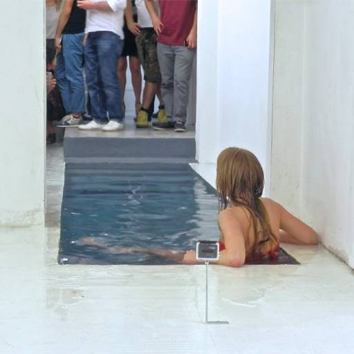 È arrivato il momento di pensare all’estate, al sole, ai costumi. Ci anticipa tutti, di un mesetto almeno, Cecilie Hjelvik Andersen, artista norvegese di nascita ma italiana di formazione. Passando per i paesaggi glaciali dell’Antartide (suo precedente progetto del 2011 presentato durante un’edizione di VIR), Cecilie approda oggi a Room Galleria con un nuovo progetto ereditato direttamente dall’idea di Bahamas (non avrebbe potuto scegliere una meta migliore per i sogni estivi). Il processo è semplice: svuotare una galleria, riempirla di svariati litri d’acqua, entrare e uscire più volte dalla nuova piscina mentre una videocamera riprende i movimenti e un pubblico più o meno numeroso guarda incuriosito. Les jeux sont faits, perfomance riuscita! Quale il vero spazio della performance? Quale il gesto performativo? Un’azione che si esplica nella risemantizzazione dei luoghi e in una loro continua trasformazione e ridefinizione. Uno straniamento del paesaggio e uno shift dei ruoli.