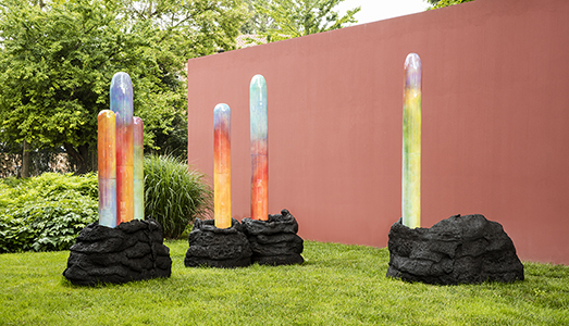 Nella seconda sala della galleria, si trovano lavori dall’estetica ancora più ambigua, eppure innegabilmente connessi al mondo naturale. Opere che riprendono le forme degli alberi pietrificati del Lava Trees State Park, nelle Hawaii. Anche qui, l’uso di un elemento naturale come l’argilla serve ad enfatizzare le forme totemiche di altrettanti soggetti naturali, ovvero gli alberi imprigionati nella lava sin dall’eruzione vulcanica del 1790. Queste ultime sculture sono state realizzate dall’artista in collaborazione con la bottega d’arte Ceramica Gatti di Faenza, la stessa con cui Arancio ha lavorato per la realizzazione dei lavori attualmente esposti in Biennale.