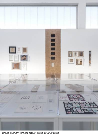 Emerge una panoramica di un intellettuale e artista raffinato, a partire dagli esordi postfuturisti, con il dipinto Futurista (1931), disegni e bozzetti che risentono dell’atmosfera culturale dell’epoca, per poi passare ai fotocollage e fotomontaggi degli anni Trenta, alle opere più astratte come il tema Negativo-Positivo che ritorna più volte negli anni, ripreso dall’artista, rielaborato e reinventato e che diviene prototipo per sculture semoventi. Infaticabile sperimentatore di nuove tecniche, la sua produzione si configura come una ricerca continua, una continuità sempre contemporanea e attuale, che si coglie dalla differenti tipologie delle opere stesse e dalle rispettive date di realizzazione, come nel caso del gruppo delle ironiche Sculture da viaggio, alcune realizzate tra gli anni Cinquanta e Sessanta e poi anche alla fine degli anni Ottanta. Una continua sperimentazione affrontata con criterio filologico diacronico che raggruppa opere che sono processi di idee, ripensate e realizzate in periodi differenti. Il percorso raggiunge l’acme con le raffinate e leggere “sculture aeree” o “macchine inutili” che oscillano dal soffitto; installazioni composte di elementi geometrici di cui lo spazio museale restituisce una percezione originale, inedita e suggestiva, enfatizzando il rapporto scultura-architettura. Opere che stimolano l’immaginazione del pubblico, lo invitano a scoprire, come nel caso del Polariscop, e rivedere con occhi diversi oggetti quotidiani ripensati ironicamente dallo stesso Munari, come le Forchette parlanti (1958) e oggetti di design inventati, tra i quali spicca il famoso portacenere Cubo creato per Danese, senza trascurare la vasta attività in campo grafico e in ambito pedagogico, con i celebri “prelibri” e libri per bambini- cui è dedicata l’ultima parte del percorso. La mostra restituisce così la complessità di una produzione immensa attraverso un percorso che, più che un’analisi cronologica piuttosto difficile, intende restituire attraverso circa trecento opere -provenienti dalle collezioni private e dei galleristi- i valori e i caratteri fondamentali di una delle personalità più influenti e attuali del panorama dell’arte e del design, e il visitatore, sollecitato dalle opere in mostra, sembra completare quel processo creativo con la propria immaginazione.