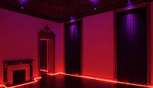 Eppure, al sottoscritto, piacerebbe anche definirla ufficiosamente una “Mise en abyme”, perché come una sequenza re-duplicata (come in alcune fotografie di Duane Michals, per esempio) la mostra di Vezzoli (allestimento di Filippo Bisagni) è un per me una sorta di wunderkammer che, nonostante sia vuota e composta principalmente di puro colore, contiene una serie di proiezioni indelebili, che attraversano il “genius loci” della città.