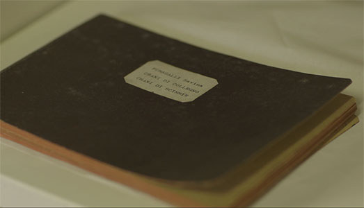 Così un’occhio di bue’ viene proiettato sul corpus di disegni riprodotti su tela realizzati tra il XIX e il XX secolo da Luigi Sapetti, internato nel Regio Manicomio di Torino, che ispirano le Scenografie per monologo (2017) di un’opera teatrale mai andata in scena. Il lavoro di riscoperta e valorizzazione di un ricco patrimonio inedito trova un immediato riferimento nell’installazione tricanale La Storia, in generale, (2017) durante la quale l’identità rispettiva di tre archivi diversi viene raccontata attraverso la quotidianità dei gesti e dei movimenti misurati dei rispettivi custodi. La gestualità, l’attento e scrupoloso lavoro di catalogazione e conservazione delle opere conferiscono nuove sfaccettature e definiscono una narrazione diversa dell’archivio che si apre così in modo inedito, uscendo dai suoi luoghi deputati. E l’artista e, con lui, il visitatore, vi entra in punta di piedi concentrandosi su dettagli eloquenti, filtrati da un’indagine e un’osservazione che non ha nulla di voyeuristico e nulla si scontato.