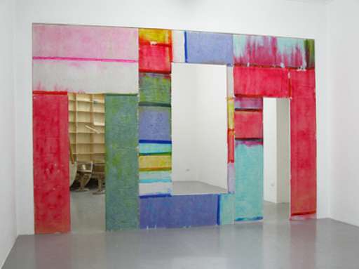Da sempre rivolta alla ricerca di nuove generazioni di artisti, la galleria Francosoffiantino rimane fedele alla propria linea espositiva e scommette una volta di più sul talento di due giovani promettenti. Il primo, di ritorno dalla recentissima Art Basel a Basilea, si chiama Michael Beutler (Oldenburg, Germania, 1976) e, sulla scia di istanze concettuali ambientali, realizza un lavoro installativo vicino alla resa visiva dei Wall Drawings di Sol LeWitt. Dai quali si distingue indubbiamente per una minore vivacità cromatica e per una totale mancanza d’interesse nei confronti dei meccanismi combinatori, tanto cari invece all’artista americano. L’interesse di Beutler gravita invece intorno al concetto di funzionalità dello spazio architettonico, spazio che reinventa, adeguandosi ogni volta alla morfologia del luogo. Così, nel caso specifico di questa galleria, riduce il suo open space in blocchi compartimentati, innalzando delle pareti effimere che s’incastrano perfettamente al soffitto in modo da creare dei nuovi ambienti.