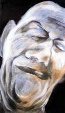 Sono settantadue, tutti affiancati in orizzontale, i mini ritratti in acrilico su finta pelle, dell’artista Bernadetta Ghigo. Dalle deformazioni vagamente Baconiane, sembrano storie minime in cui personaggi senza volto cambiano continuamente posa.