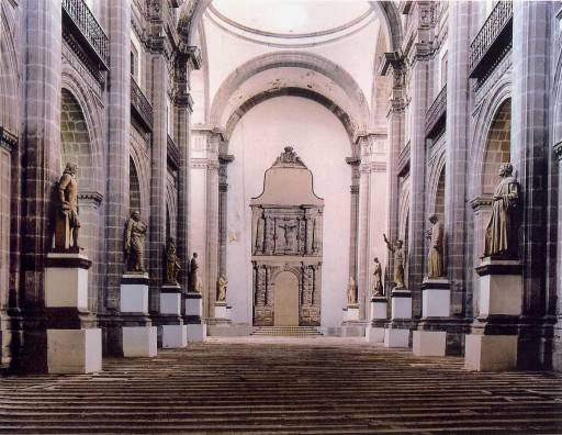 Candida Höfer presenta il suo tema ricorrente, l’interno di due edifici pubblici, esaminati nelle linee di forza della loro composizione architettonica, e sottraendo allo sfalsamento dei piani le tonalità che caratterizzano la profondità, per privilegiare le masse luminose e aggettanti. Un’esaltazione del rigore formale nella sua solennità, una firma aulica della simmetria.