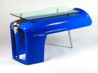 : Nel ’99 abbiamo cominciato a lavorare insieme. Ci ha uniti la comune passione per il design e per i rottami. Non rottami generici, ma pezzi meccanici, oggetti di culto dimessi espressivamente interessanti – spiega Cesare Catena – Penso al fenomeno custom, le gigantesche moto a due, tre o quattro ruote che, al di là della meccanica, rivelano un notevole valore estetico. Oggetti che, assemblati e rivisitati, assumono una nuova funzione: Produciamo sia oggetti seriali, sia pezzi unici – design e arte. In entrambi i casi, rimane nei nostri lavori il richiamo al design degli anni ’60, alle forme curve e ai colori accesi della Vespa, della 500, dei mezzi di trasporto in generale. Anche nel design puro, – aggiunge Lorenza Capitano – cerchiamo di dare agli oggetti una memoria storica. Per questo motivo utilizziamo spesso oggetti di culto: il fascino degli oggetti di trenta, quarant’anni fa è infatti irripetibile. La Vespa è riconoscibile da chi la utilizzava allora ma anche dai giovani, da chi semplicemente la vede in giro ancora oggi. Non soltanto dei progetti di design del passato, quindi, ma delle icone entrate nella Storia di un’epoca cui i RottamAzione aggiungono una storia diversa, personale, legata alla materia di oggetti che, esaurita la loro funzione, erano stati marginalizzati. Con questo spirito nascono i pezzi esposti nella mostra Materia dopo: lampade incastrate nel manubrio di una motocicletta, tavolini sorretti dal muso di un trattore, cassettiere inserite dentro l’ex-scatola di un televisore. In chiusura di catalogo, la foto di rottami, lamiere e gomme compresse, di Simona Galeotti: DeSide non è un comune luogo espositivo. È un progetto artistico plurale incentrato sul design in cui sono coinvolte molte menti artistiche. Ci piace collaborare con altri artisti, talvolta anche quando produciamo le nostre opere. È un percorso che desideriamo fare insieme ad altri artisti che sentiamo vicini per impostazione ed estetica.
