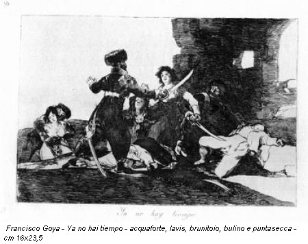Del resto, è difficile contestualizzare temporalmente le sue tavole: su una lastra soltanto compare una data: 1810. D’altra parte, all’artista non interessa porre l’attenzione sugli eventi politici; non è la ribellione di Saragozza del 1808 o la carestia di Madrid del 1810 che intende descrivere, bensì gli orrori della guerra in tutta la loro aberrante realtà.