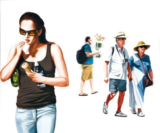 Gesti quotidiani, persone in movimento, turisti che sbarcano dalle navi da crociera o che si apprestano a decollare per un soggiorno all inclusive, come recita il titolo della mostra. Con la sua prima personale a Torino, Corrado Zeni (Genova, 1967) mette in scena l’antiteorico, gente qualunque che si trova a passare per strada, fugace, impegnata in attività frivole. Chi passeggia, chi scatta una foto, chi discute.