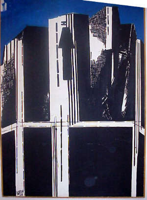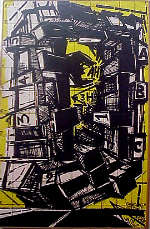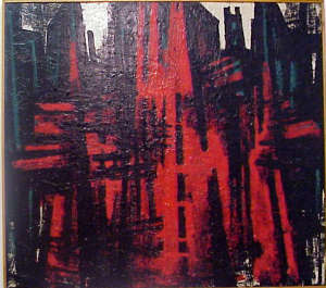 Le “espansioni” dei primissimi anni Cinquanta segnano un sondaggio spaziale dell’impianto strutturale: la struttura si converte in segno e si fa duttile, riassumendo l’intensità di una carica espressiva. I dipinti sul tema” Cittadella ostile” ripropongono sbarramenti strutturali, ma intesi in tutta la loro precarietà di confronto temporale, e perciò matericamente sottolineati.(Cittadella ostile, 1955-56; Momento atomico, 1954).