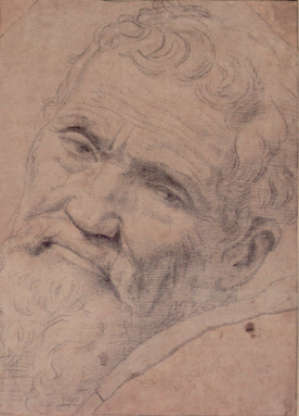 Tra gli schizzi per l’Assunzione per la Cappella della Rovere è esposto un foglio che ritrae il volto di un apostolo con le fattezze di Michelangelo; l’espressione del maestro, pensosa e un po’ malinconica, prefigura il celebre ritratto in bronzo che Leonardo Buonarroti (nipote di Michelangelo) commissionò a Daniele all’indomani della morte di Michelangelo. All’attivita di Daniele come scultore appartengono anche gli studi del monumento equestre di Enrico II di Francia; l’opera, mai portata a termine, vedeva il Ricciarelli in collaborazione con Michelangelo.