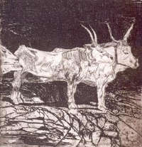 Baboni «si esprime nella interrelazione continua delle tante espressioni tecniche, dall’appunto al disegno, al bozzetto, al quadro finito ed all’incisione in un processo continuo di definizioni, rimandi e riproponimenti. Credo non vi sia nella storia dell’arte un protagonista che come lui svolga un soggetto riprendendolo nel tempo, ambientandolo diversamente, ricomponendolo più e più volte ad olio, spesso riassumendolo conclusivamente all’acquaforte. In lui l’incisione, invece che replicare, rende assoluta, purifica l’immagine dai riferimenti descrittivi, riconducendola ai puri valori di archetipo: bagliori di bianchi ed ustioni di neri racchiusi dalle serrate trame di un segno forte». Del resto quel segno assoluto, vibrante, aspro, nasce da esigenze espressive primarie, nella vitalità di un rapporto diretto con le cose e le loro immagini, sul filo dell’emozione. Istintivo quanto geniale Giovanni Fattori, con il suo stile inconfondibile, impronta una ricerca grafica incomparabile per ricchezza linguistica, non solo nella storia dell’arte tra otto e primo novecento.