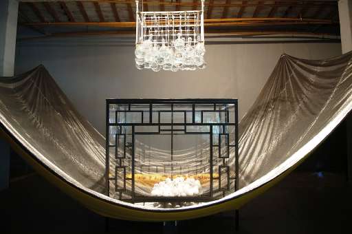 Tre mostre e un’installazione. La Galleria Continua chiude la stagione con una rosa di nomi importanti ed un giovane artista egiziano. Salta immediatamente all’occhio, entrando nello spazio di Via Del Castello, un enorme rosario in alabastro poggiato sul pavimento. L’opera, pensata da Mona Hatoum non ha alcuna valenza religiosa. Tutt’altro che uno strumento di invocazione, esso, astratto dal contenuto, diviene unicamente forma. Con la quale si relaziona Drawing Sorrows (wine bottle) un’installazione di bottiglie in vetro, sezionate e parzialmente fissate nel pavimento, i cui rispettivi diametri vanno a formare un cerchio perfetto. Gli oggetti, pur vivendo in una condizione di equilibrio precario non svelano, nell’accorpamento la propria fragilità, ma sembrano, invece, invocare forze magiche, superiori, come novelle Stonehenge della contemporaneità. Allo stesso modo, le Vitrine, piccoli diademi in plastica, legno e pasta di vetro, posti sotto teca, rievocano uno stato d’intimità domestica e una grazia tutta femminile che tanto ricorda la produzione di ninnoli e cammei ancestrali conservati nei musei. Non distante da queste premesse e sempre giocata sulle trasparenze (oltre che su acrobatici giochi di pieni e vuoti) è l’installazione che occupa il teatro sottostante la galleria. Web, intreccio claustrofobico di sfere di cristallo, sostenute da sottilissimi fili, riprende in proporzioni monumentali, lo schema formale delle Vitrine. La crisi dell’oggetto e dello spettatore è data dalla levità della composizione, in rapporto forzato con le inquietudini generate dalla trama di fili orchestrata dall’artista, per invischiare sogni (le sfere), pensieri ed ansie dei suoi visitatori.