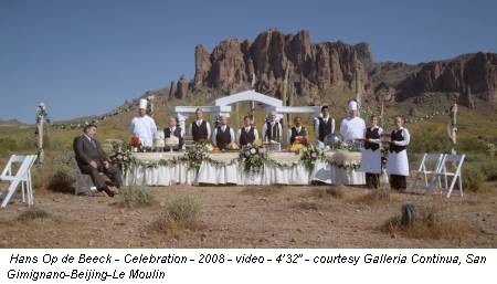 Hans Op de Beeck (Turnhout, 1969; vive a Bruxelles) ci ha abituati allo straniamento di ambientazioni che sembrano rigettare la presenza dellâuomo, ostili alle sue emozioni; a un freddo fiammingo, cristallino e inquietante. Anche quando la scena è ambientata nel deserto dellâArizona, come nel video
