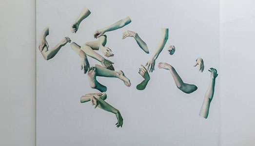 Il progetto espositivo trova una conclusione ideale nel grande dipinto ad olio di Marta Dell’Angelo Folata, una composizione di arti sul punto di fuoriuscire dal loro equilibrio per tornare a muoversi. Parti di un insieme che si frammenta per sottrarsi a uno sguardo sbrigativo, gli arti si rendono autonomi partecipanti di un sistema coerente e, come l’intero progetto espositivo, invita l’osservatore a interpretare il tutto attraverso il proprio corpo.