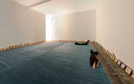 La grande installazione in platea (The blue Carpet) crea un osservatorio per ricostruire nel silenzio il recupero di piccole porzioni di vita raccolte in oggetti minimi e carichi di ricordi. Quasi come se nella grandezza di un oceano blu (l’ambiente creato al centro della platea è quasi interamente coperto da un enorme tappeto azzurro) potesse ritrovarsi il senso dell’esperienza e delle cose.