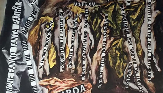 La mostra fiorentina di Nanni Balestrini offre due distinti cicli di opere: un omaggio ai grandi Maestri del colore, le vere e proprie icone della storia dell’arte e i Neri con i quali l’artista riflette sul concetto di distruzione che le macchie realizzano, invadendo la tela e la costruzione architettonica delle parole. Il percorso espositivo concretizza la complementarietà dei cicli pittorici, entrambi tesi al complesso universo del visibile, luogo d’incontro dell’Io con il mondo, in cui la Storia si confronta con il tempo reale e il linguaggio riproduce il possibile nella potenzialità dinamica dell’espressione artistica contemporanea.