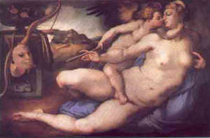 confrontarci con tre altissime espressioni dell’arte fiorentina intorno al 1530. La collaborazione tra artisti, e in particolare quella tra Michelangelo e Pontormo, per la realizzazione del dipinto centrale con Venere e Amore è particolarmente suggestiva perché. Michelangelo eseguì il cartone – a lui spetta dunque l’invenzione- e Pontormo lo tradusse in dipinto, ma in questo nessuno ravvisava contraddizione o prevaricazione e il dipinto veniva considerato un capolavoro tanto da essere forse tra le opere più copiate del Cinquecento fiorentino.