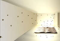 Che cos’è la comunicazione profonda? Una preziosa rarità nascosta tra vecchi pizzi e merletti o il Santo Graal di uno scenario futuribile ? In un’era dove la facilità di circolazione della cultura non manca di suggerire ai più scettici l’idea di una semplificazione del pensiero, si fa sempre più necessaria una visione aperta del mondo alla quale anche l’artista può contribuire attivamente come sembra indicare l’installazione Le api della Torah, realizzata da Emilio Isgrò appositamente per la sala d’Arte Contemporanea della Libreria Salomone Belforte & C. di Livorno. All’interno della sede di quella casa editrice che per due secoli fornì la Torah e altri libri di preghiera alle comunità sefardite del Mediterraneo è collocato un grande libro dal quale si muovono delle api, simbolo di quegli ebrei che suggevano il miele di Paese in Paese, sulle sponde del Mediterraneo e lo portavano ad altri popoli affermando una posizione positiva nello sviluppo del pensiero europeo. L’opera, sulla scia de La Rotta dei Catalani precedentemente creata per il costituendo Museo Mediterraneo d’Arte Contemporanea di Palermo, si inserisce in un discorso più ampio volto allo studio dei semi e degli insetti del Mediterraneo da utilizzare per la ricostruzione di una identità “umana”, che rischia di essere definitivamente travolta. Il tema delle api è, quindi, un auspicio di felicità. E’ la speranza di uscire dalle inquietudini del nostro presente nel segno di una libertà più alta e di una giustizia più diffusa. A Livorno, una città da sempre disponibile ad accogliere tutti quei popoli che cercavano di sfuggire alle reti nelle quali il potere dominante voleva avvilupparli Emilio Isgrò non solo individua un’altra tappa ideale di quel “Laboratorio mediterraneo”, a cui lavora ormai da diversi anni , ma inaugura anche una nuova avventura della Casa Editrice Salomone Belforte & C., che, rilevata nel 2001 da uno degli eredi, l’editore – mercante d’arte Guido Guastalla, con i figli e alcuni soci, intende ricominciare a stampare libri di argomento ebraico. L’attività era stata interrotta dalla vergogna delle leggi razziali fasciste. Oggi con quasi due secoli di storia alle spalle la libreria livornese, che ha una sezione giudaica tra le più ricche disponibili in Italia, manifesta la volontà di riannodare i fili del passato consolidando e sviluppando un’attività di sicuro interesse.