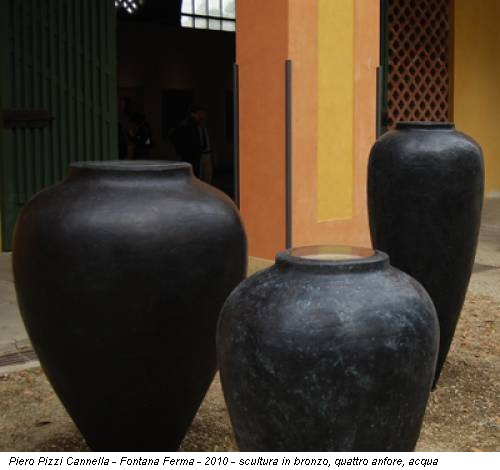 anfore in bronzo, contenenti acqua a sfioro. Un leggero movimento del liquido