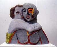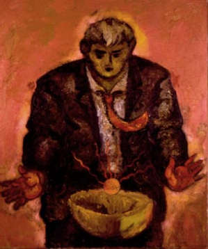 A finire, urne bellissime, alabastrine di mistero totale. Alle pareti opere recenti per la prima volta esposte e alcune, celebri, dei decenni passati (Miracolo laico, 1985), con tutta la mitologia, il cromatismo e la plasticità della pittura di Chia. All’interno dei grandi archi che scandiscono la sala del Museo Archelogico, delimitati da sacchi decorati con il calco di un’antefissa etrusca custodita nei depositi del Museo (anche questo frutto dell’inventiva di Chia), si offre al nostro sguardo un unicum atemporale in cui ciascun singolo oggetto assume un significato diverso; e non si può certo parlare di travisamento o snaturamento della funzione di questi reperti dell’antico. Con che arrogante supponenza possiamo noi certificare com’era la loro vita primigenia? E non è forse una violenza anch’essa sulla loro, per noi arcana, esistenza primaria, quell’esporli così, nelle fredde bacheche di un museo? Ora, tutti insieme con queste pitture e queste sculture di classicità primigenia e di mediterranei colori, formano una corale d’arte che ci svela valori diversi e frantuma ogni differenza epocale. Quando nuovamente si separeranno, nuovamente saranno un’altra cosa, il loro significato rientrerà entro canoni più usati, e noi torneremo ancora a interrogarci sulla loro natura; ma ad una riflessione simile, forse, non dovrà sottrarsi nemmeno l’arte di Chia, e sarà certo un altro discorso.