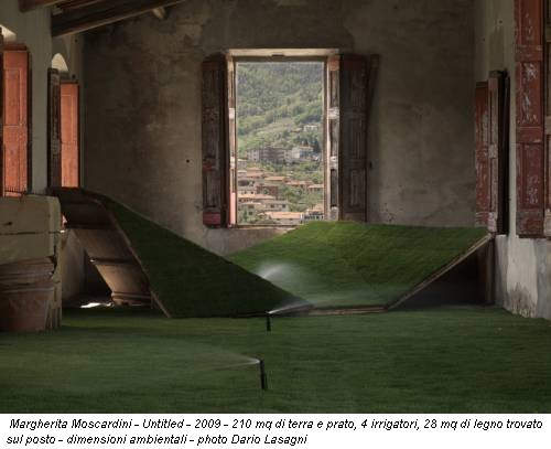 Margherita Moscardini - Untitled - 2009 - 210 mq di terra e prato, 4 irrigatori, 28 mq di legno trovato sul posto - dimensioni ambientali - photo Dario Lasagni