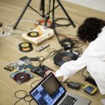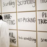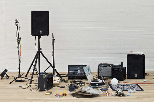 L’orizzonte entro cui Dawn Kasper muove gli innumerevoli oggetti, grandi come tavoli e piccoli come fogli di carta, è, infatti, tracciato da John Cage e dalla sua ricerca sul suono. Ma poi vi convergono anche la poesia, con Edward E. Cummings e il suo poema & sun &, che ritorna anche in parte del titolo della sua installazione, e la scienza con The shape of time, titolo del secondo capitolo del saggio di Stephen Hawking L’universo in un guscio di noce, e seconda parte del titolo dell’installazione di Kasper, & sun & or THE SHAPE OF TIME, all’interno della quale l’artista ha dato vita alla sua performance. Così, accanto al suono, l’altro elemento centrale del suo lavoro è la dimensione del tempo, indagata da Kasper attraverso l’utilizzo della pratica del film, del video, della fotografia, della musica, della poesia e della pittura.