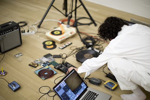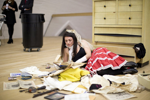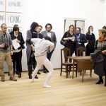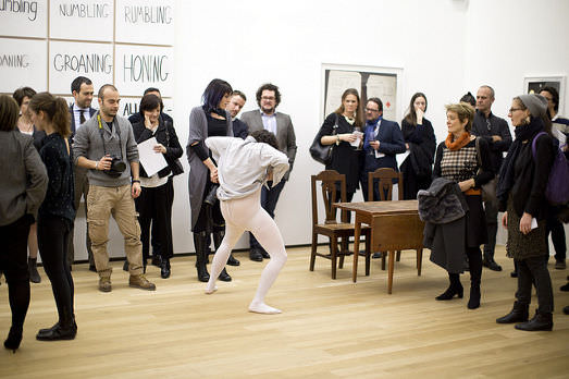 Ma venerdì 30 gennaio, questo mondo ordinato e di non sempre facile comprensione – come spesso accade nelle collezioni che si rispettano, più problematiche che semplicemente “belle” – ha compiuto una sorta di virata. Vi ha fatto irruzione Dawn Kasper, artista, performer, di stanza a New York e con discreto curriculum alle spalle, il cui lavoro è basato sulle connessioni che lei istituisce tra suoni, azioni, movimenti e danze. E il risultato è che sembrava di stare in una cantina o in una galleria off di New York negli anni ’70.