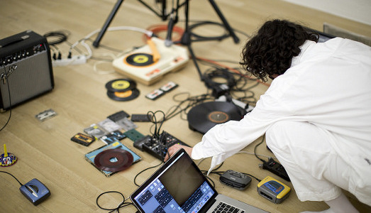 Ma se questo è lo statement del suo lavoro, la realtà che propone a chi le sta di fronte nella performance o a chi attraversa la sua installazione, è quella del tempo accelerato e border line dei suoi movimenti, che segue i ritmi del suono ma soprattutto le distorsioni che a questo imprime l’artista. Un tempo circolare, che sembra avvitarsi in una spirale nella ripetitività ossessiva dei gesti.