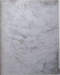 Simili per concezione e bellissime sono le tele argentee realizzate ad olio e smalti, piani verticali minimali riflettenti la luce: da lontano si rilevano ancora tracce, simili, stavolta, a pieghe o graffi; da vicino è la tramatura della tela ad evidenziarsi ed a trasformarsi in una sorta di griglia d’argento..jpg)