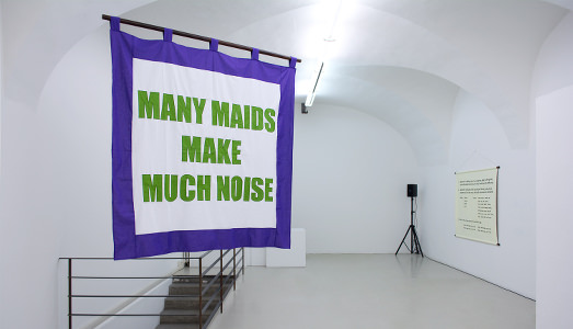No sex in nature, Learning to Speak Sense, Fascism and Feminism, Many maids makes much noise: già nello scorgere qualche titolo è più che evidente che temi come l’emancipazione e il riconoscimento dei diritti sono parte integrante di pressoché tutte le opere. Come mood spicca Urania; questo vecchio giornale privo di contenuti editoriali, fonte anonima di messaggi e portatore di frammenti dallo spirito vagabondo ma, soprattutto, insegna di un lavoro di gruppo, stendardo di un gesto condiviso. Rispolverata dalla Plender, Urania, diventa l’icona della collettività, argomento ugualmente caro ad ar/ge kunst che con questa mostra chiude il programma dedicato ai trent’anni della sua attività come Kunstverein (gruppo di lavoro).