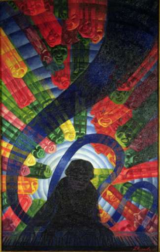Lampi (1910) è un olio su tela che, pur presentando alcuni elementi tipicamente divisionisti, denota una sensibilità pre-futurista. Al centro dell’opera troviamo infatti la città moderna con le sue industrie e ciminiere; il cielo notturno viene squarciato dalla potenza del fulmine, mentre i lampioni illuminano la città che dorme. Ma è La rivolta, scelta da Martinetti come icona del futurismo per la mostra di Parigi, a sintetizzare in modo esemplare tutta la carica dinamica e distruttiva del futurismo nei confronti della tradizione e del passato: la città crolla sotto l’assalto della folla “infiammata” dall’impeto futurista.