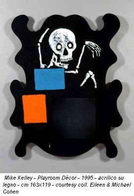 Mike Kelley (Detroit, 1954; vive a Los Angeles) intende la negazione letteralmente come buco all’interno della nostra esistenza, come lasso di memoria che risulta da un abuso subito. Applica infatti le teorie psicanalitiche della “memoria repressa”, ma non agli eventi tragici che trasformano in un assassino seriale, bensì alla vita quotidiana. Gli abusi a cui Kelley fa riferimento sono le prevaricazioni della nostra individualità.
