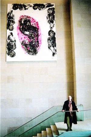 Anche nei lavori di Jens Leibchen lo spazio diviene elemento costitutivo dell’immagine. Leibchen infatti ha ambientato le sue fotografie all’interno del Reichstag, uno dei numerosi edifici pubblici di nuova costruzione in città. In questa cornice ha immortalato artisti come Katharina Sieverding, Jenny Holzer e Gerard Richter davanti alle loro opere. Ne risulta un equilibrio formale che vede l’artista ritratto in basso, piccolo rispetto alla grandezza dell’opera e al rigore dell’architettura.