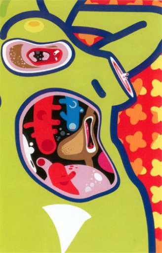 C’è chi, come Carlo Vedova, risolve con sgargiante sensualità pop soggetti tutt’altro che accattivanti, come parti anatomiche e interiora, c’è Marco Adami, per il quale il pop si fa decisamente più aniconico, riducendosi alla bicromia e agli intrecci fitomorfi, a tratti vicini alla sensibilità di Paul Morrison ma anche all’horror vacui della decorazione altomedievale, c’è Federico Lanaro, che mescola reale e immaginifico in un concettualismo esile e romantico, e c’è Laurina Paperina, con il suo mondo surreale popolato di supereroi improbabili e situazioni paradossali.