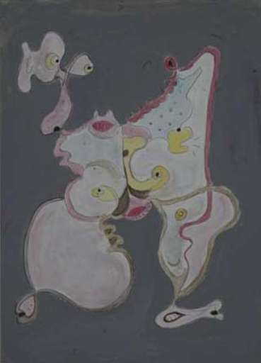 Ad un primo sguardo viene alla mente un pittore come André Masson, ma meno tragico nell’indagare le forme che giacciono nell’immaginario. Dorfles, infatti, rappresenta forme riconoscibili: occhi, mammelle, organi di animali preistorici, che vengono riportati in vita da epoche remote. Come nei personaggi di Incubo giallo (2000) o di Crisalide antagonista (2004). Ciclope con zampa e uncino (2004) e Lumacone sono altri esempi di non figuratività che alludono a composizioni care ai surrealisti di Cadavre exquis (1925).