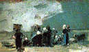Barbizon, che come sostiene in catalogo Virginia Baradel “non fu mai una vera scuola, con un programma e una teoria”, ebbe il pregio di offrire nelle immediate vicinanze di Parigi e ai bordi della foresta di Fontainebleau un luogo incontaminato ricco di spunti utili ad una visione nuova, spontanea e senza filtri della natura, e gli artisti che a partire dagli anni venti dell’Ottocento vi si recarono a dipingere contribuirono, ognuno con il proprio stile ma tutti in nome del rinnovamento, a creare “un antefatto certo dell’impressionismo”. Con una chiara analisi di parte dell’‘antefatto’, la prima sezione della mostra offre l’opportunità di avvicinare opere poco note al grande pubblico, e tra queste in modo particolare i lavori di Huet e Harpignies, vivace nell’enfasi ancora romantica il primo con fogli datati intorno agli anni ‘30, più pacato e descrittivo il secondo, di cui si possono osservare opere eseguite per lo più negli anni sessanta con la tecnica dell’acquerello. La mostra prosegue con il capitolo conclusivo dedicato all’opera degli artisti impressionisti, con fogli a tecnica mista di Boudin, grande interprete della luce, del mutare dell’acqua e delle nubi, tra i quali un piccolo lavoro intitolato “Pescivendole su una spiaggia in Normandia, 1870-1872” particolarmente intenso e vibrante, e a seguire tra gli altri opere di Jongkind, Manet, Latour, Monet, quest’ultimo coinvolto alla pratica dell’en plein air proprio da Boudin e Jongkind. Di Cézanne sono in mostra tre fogli disegnati a matita con studi da “La battglia di Cascina” e un altro non datato con ritratto del figlio, oltre al “Ritratto di Guillaumin” del 1866 circa.