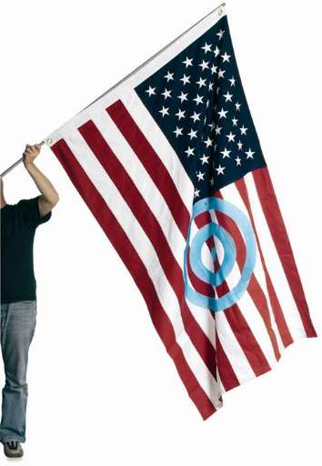 Il nucleo della mostra si sviluppa nell’appartamento della gallerista. Uno spazio privato, giacché lo spazio pubblico della galleria è stato trasformato dall’artista in una sorta di grande manifesto, di street work da vedere transitando nella calle degli Albanesi. Una grande bandiera americana mostra al centro un grande bersaglio e si trasforma in un catalizzatore di emozioni e riflessioni. Di Caprio non vuole denunciare nulla, lascia al singolo decidere cos’ha sotto gli occhi. Ciò che conta infatti è la presa di coscienza che quella bandiera, nel mondo contemporaneo, rappresenta, in ogni caso e in ogni luogo, il target per antonomasia: politico, culturale, economico, nel bene e nel male, il riferimento è quella composizione a stelle e strisce. È la profezia di Jasper Johns; la citazione dell’artista italiano non fa che sintetizzare le contraddizioni della nostra epoca.