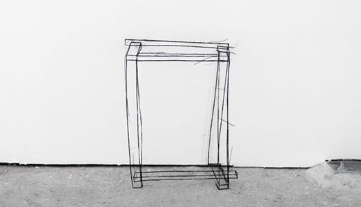 I lavori di Fritz Panzer sono dei disegni che, mediante l’impiego del filo metallico, si trasformano in sculture che tracciano spigoli e profili degli oggetti ritratti riducendo la planimetria a un unico piano visivo che spiazza la percezione dell’osservatore.