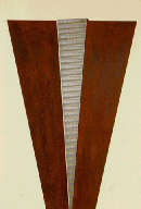 I colori manifesti nei dipinti tendono al bronzo e all’oro, anche se non mancano impennate verso una luminosità argentea, a segnare di eleganza la semplicità geometrica delle forme. Analizzando i riferimenti di cui si nutrono le opere dei due artisti si scopre che per Adriana Marchetto i viaggi compiuti, prima nei paesi nordici e più recentemente in quelli mediterranei, la hanno caricata di tante piccole esperienze significative, ognuna meritevole di citazione, di espressione…ma che tuttavia tendono a smarrirsi entro i più labili confini di altre esperienze ancora (un rincorrersi perpetuo); in Dal Bianco invece, l’interesse per gli spartiti e per la musica, lo hanno condotto verso un’astrazione dell’armonia rinchiusa nella singola opera…tutto appare geometricamente, con rigidità (così come impone la nota pura) all’interno di un “vuoto” asettico ed etereo, palcoscenico ideale per evidenziare l’ostensione di una “sola” figura. Nella giornata inaugurale gli artisti erano presenti, e in un clima di semplice intimità si prestavano a spiegazioni e chiarimenti sul loro operato, una “cortese” chiacchierata, in somma.