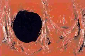 dell’arte così pieno di fermenti creativi e ricerche poetiche quale fu quello dagli anni Cinquanta agli anni Settanta. Con andamento quasi cronologico nelle sale si susseguono i lavori informali di Alberto Burri, quelli dell’espressionista astratto americano Conrad Marca-Relli a confronto con Immagine del tempo del 1951 di Emilio Vedova, dipinti di Afro e del canadese Riopelle; seguono le stanze dedicate al segno astratto inteso come ‘scrittura dello spazio’ con tre grandi e poetiche opere verticali di Gastone Novelli, un Capogrossi e Concentrico Blu (1960) donato dall’artista Carla Accardi. Gli anni Sessanta sono rappresentati da Lucio Fontana, il fondatore dello Spazialismo, e opere monocrome del gruppo Azimuth con un Achrome (1958-59) di Piero Manzoni e un Nero (1966) di Bonalumi, a cui da venerdì 5 luglio è dedicata una sala/ambiente creata appositamente per il museo.