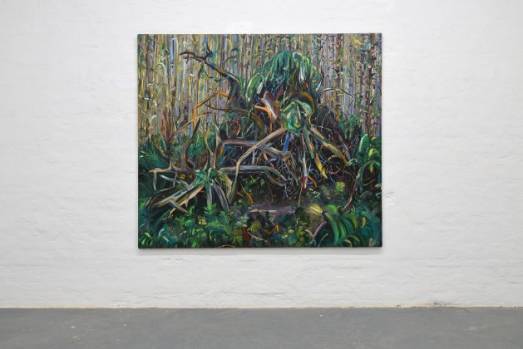 “(SOMERSAULT)” si apre con disegni quasi astratti, realizzati a carboncino, penna litografica e pastelli ad olio su uno sfondo monocromo. Le opere vengono incastonate nelle proprie casse di trasporto in legno, diventano cornice e si spogliano del loro essere contenitore per divenire parte del contenuto. Così si ripete il modulo anche nelle stanze successive, ma presentando olii su tela di diverse dimensioni che rappresentano paesaggi norvegesi, realizzati da Fato nel 2015 dopo aver partecipato alla residenza presso il Nordic Artists’ Centre Dalsåsen.