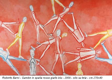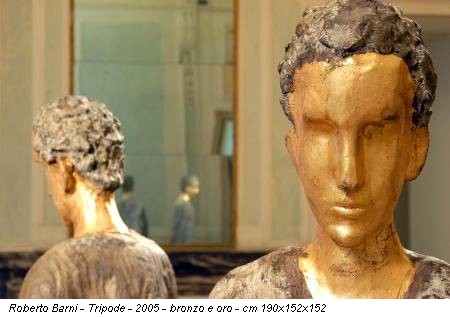 È la scelta del linguaggio forse a determinare un certo riso interiore. Se la parola raggiunge il pensiero, la rappresentazione coinvolge tutto l’essere; ed è questo, nelle proposte di Barni, che scatena l’ironia. In Remar contro (2000) se ne ha l’esatto sentore: i due vogatori, disposti l’uno di fronte all’altro in una bagnarola, remano in direzioni opposte, provocando una tragica immobilità. Ma anche in Tripode (2005), dove tre figure maschili, da un ipotetico centro perduto, si dipartono verso non si sa quali direzioni. Ancora più pertinente è la situazione di Divergenze: le due figure, l’una sopra l’altra, camminano in direzioni opposte, quasi a voler ribadire l’impossibilità di un incontro dialogante.