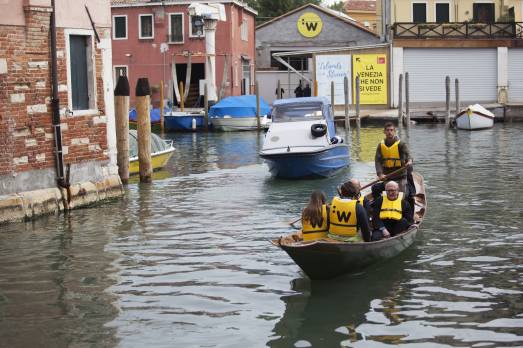 Non è un caso che le gondole in questione navigano a San Pietro di Castello, quartiere poco distante dall’Arsenale e che è rimasto spazio umano, quasi un’oasi protetta dove la comunità ritrova luoghi di socialità – famosissimo il centro sociale Morion -, organizza momenti di condivisione -come la celebre sagra del pesce di fine giugno-, e da dove in questi anni sono partiti molti comitati cittadini per ripensare il ruolo delle grandi navi in città. Parte sostanziale della mostra è l’applicazione BlindWiki, un network che raccoglie il racconto dei partecipanti e che si attiva attraverso il gps: è così che in Calle Gradisca una visitatrice registra il suono del ritorno delle cicale in laguna e lo condivide con la rete o con chiunque si trovi a passare in quel luogo in un dato momento; oppure un altro visitatore riporta in diretta le impressioni dalla Festa del Redentore, facendo immaginare il sottofondo dei fuochi d’artificio e le barche che scivolano sul Canal Grande.