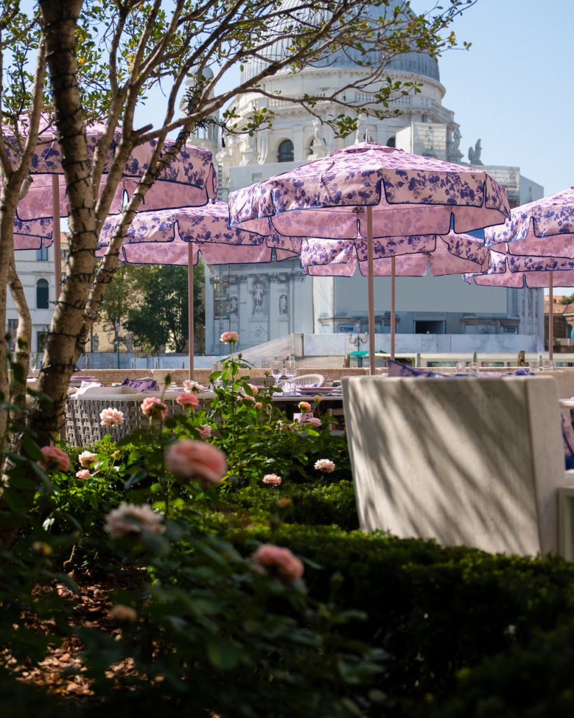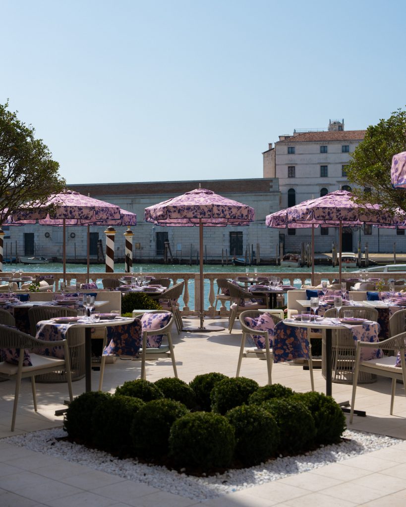 Giardino Ginori, questo il nome dello speciale takeover veneziano che concentra in un unico spazio la fusione tra Oriente e Occidente, in un delicato equilibrio di forme e di colori. Protagonista assoluto, il pattern Oriente Italiano “Azalea”, qui declinato su cuscini e ombrelloni per esaltare la bellezza naturale del luogo, perfettamente in dialogo con la mise en place esuberante della collezione Oriente Italiano.