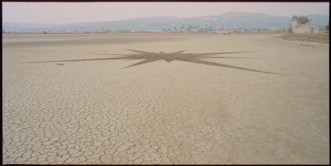 Ho pensato che, a fornire le coordinate di quello spazio desolato, potesse essere un’enorme rosa dei venti, disegnata sul terreno bianco e scavata, semplicemente, con una pala. La stessa rosa dei venti era presente negli appunti dei bambini in una delle case visitabili: si dice che si usassero pagliette d’erba secche per permettere loro di muoversi con l’umidità trasportata dal vento. Il piano su cui si muovevano era appunto una rosa dei venti disegnata, e queste proprietà magiche conferite dai bambini servivano come preveggenza verso la pioggia e il maltempo. In quei momenti, osservando quel luogo che si distruggeva lentamente al sole, portandosi dietro tutta la storia delle comunità che lo abitavano, non riuscivo a vederlo necessariamente come un episodio tragico. Al contrario, lo percepivo come qualcosa di estremamente vitale e dinamico. La stessa comunità italiana di quei luoghi è in continua trasformazione e l’idea che questo lavoro si proiettasse nella stessa direzione di quel processo di trasformazione, verso il futuro, mi sembrava la direzione giusta da intraprendere.